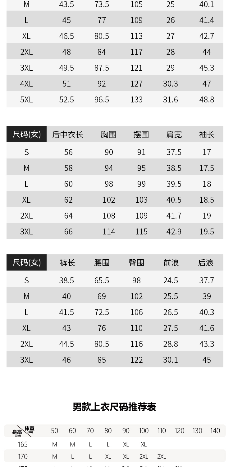 尺码表
